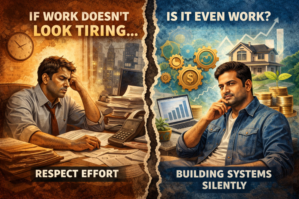Older generations grew up in a world where hard work was always visible. A man would leave home early, go to office, sit at a desk all day, return tired in the evening and collect a salary at the end of the month.